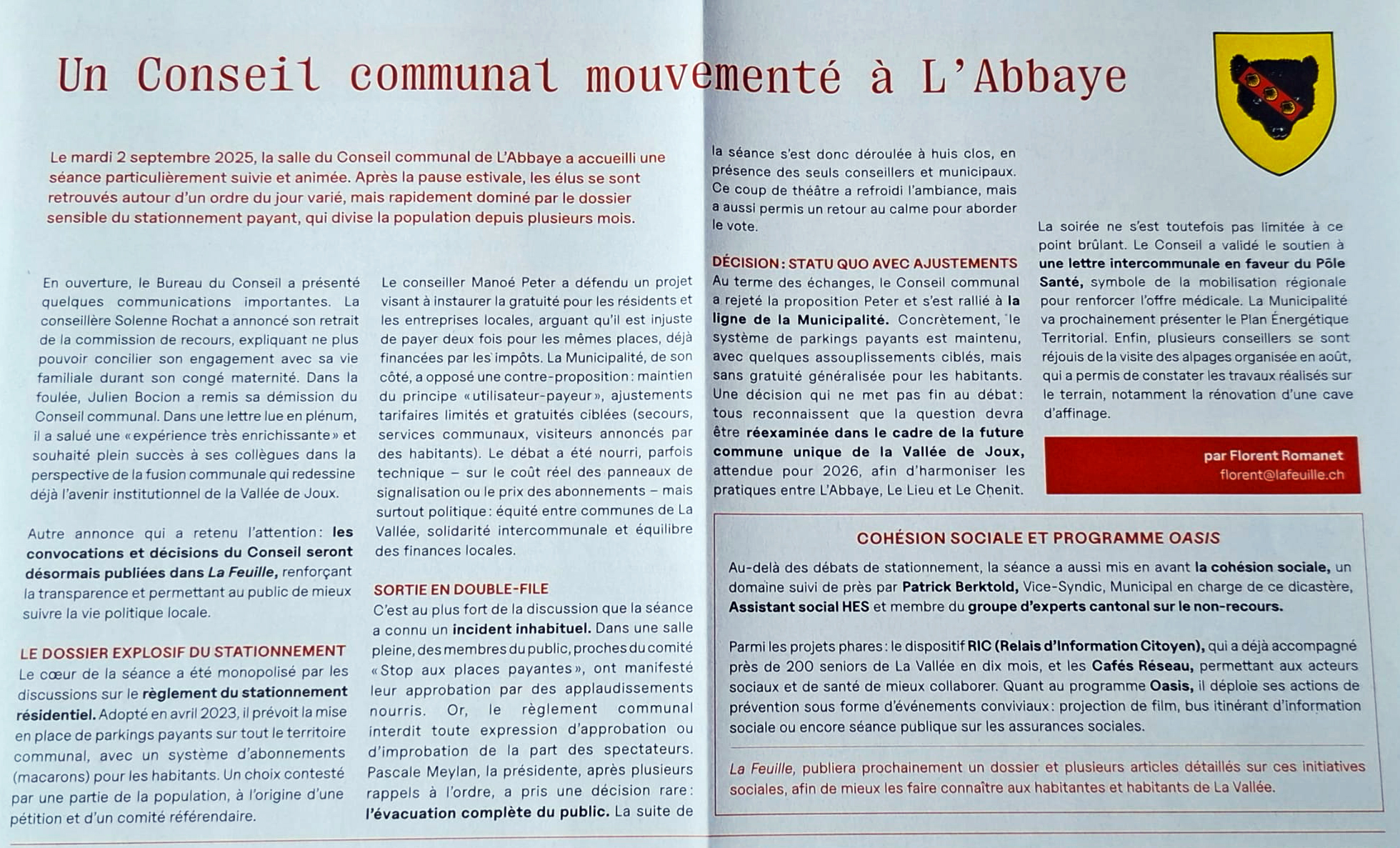 Articles suite à la séance insultantes du conseil communal du 2 septembre 2025